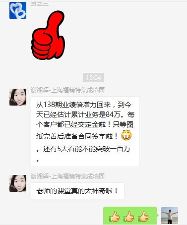 我是谢湘辉,我是 138 期业绩倍增力的学员,三天两晚的课程让我学到了很多也发现了自己以前带团队的很多缺点,以前觉得带团队不就是老方法老套路,现在终于知道了原来可以这么轻松而且业绩还可以翻倍增长。原来拼命努力,一年的业绩两百万不到,而且一般是垫资,有些做完工程后都收不回现金。从课堂回来就直接落地了,不到一个月的时间累计业务 84 万多,而且每个客户都是全部交完定金,等图纸确认就交全款签合同。感谢万合、感谢老师让本来处于低潮期的公司起死回生,感恩!
