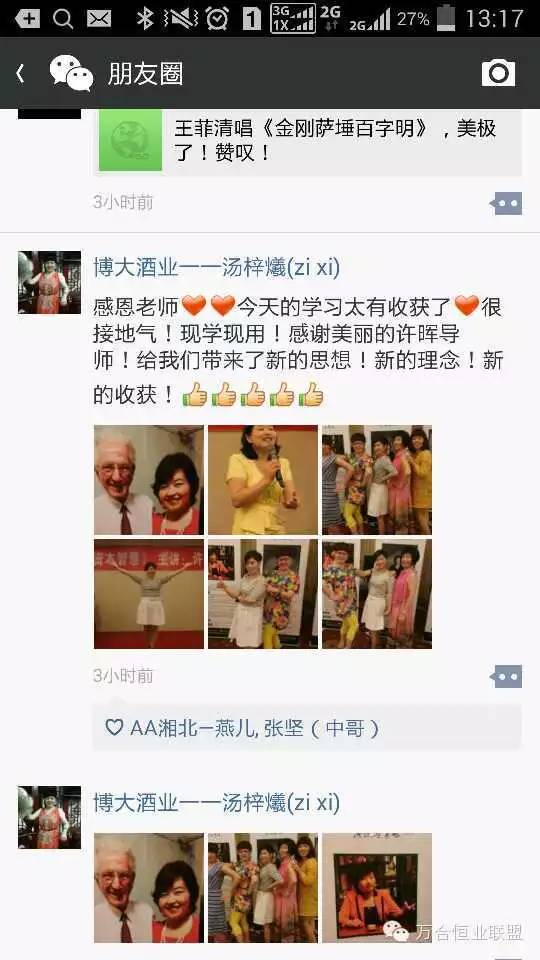 2017 年我们这个行业遇到了前所未有的寒流,一大波同行遭遇业绩下滑厉害,甚至倒闭!而我的公司不仅没有受到影响,业绩还有 20%的增长,而且在春节期间普遍行业都哀鸿遍野时候,业绩再次增长 20%,这些都是结缘万合的收获。2017年的我过得忙碌又充实。通过这一年的学习我总结出,成功是有捷径的,风险是可规避的,不要说学费贵,要是不持续学习被挖走的人才,损失的客户,也是在交学费,这些学费会更贵!