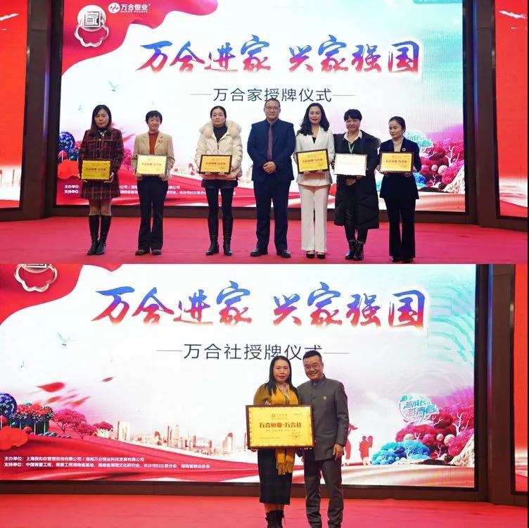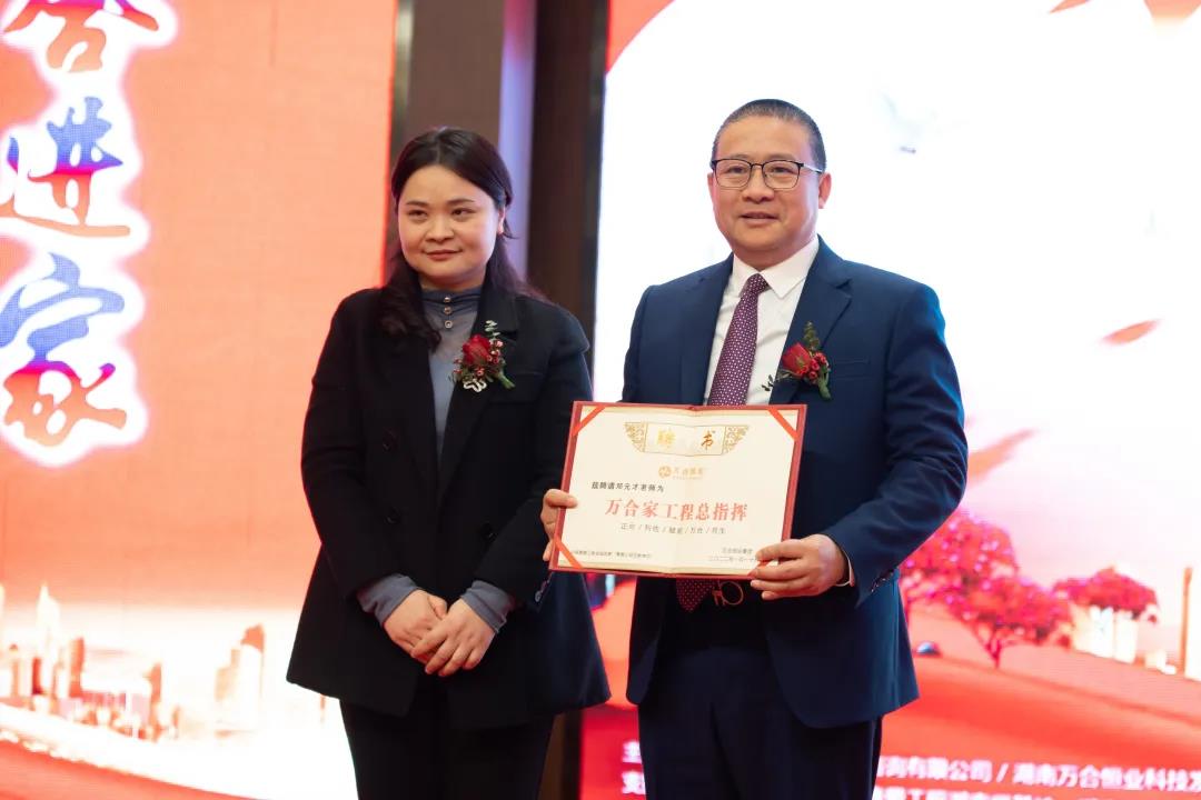 听完领导、嘉宾以及优秀万合家代表分享,进入到了隆重的万合家工程受聘仪式。全场所有的来宾们共同参与并见证了这一历史性的时刻。由彭继球主席授予许罗轩女士“万合家工程总政委证书”。由付木林董事长向张中老师授予“万合家工程总督导证书”。由李艳清主席为邓元才老师授予“万合家工程总指挥证书”。隆重的受聘仪式意味着万合家工程站在了全新的起点。沉重的证书让万合人肩负证书的责任,珍视证书的荣誉,在未来也会追求证书赋予的精神!